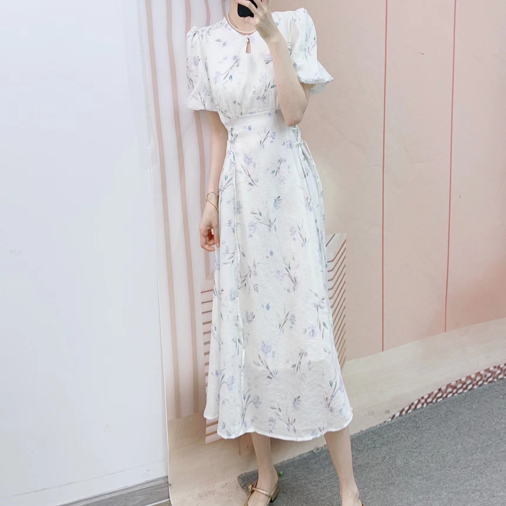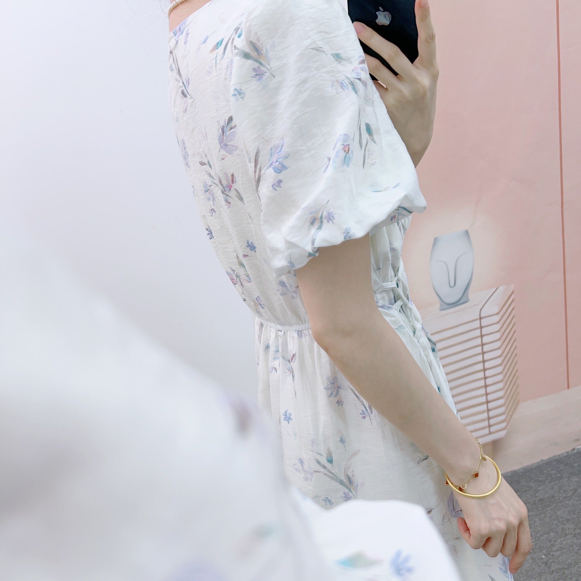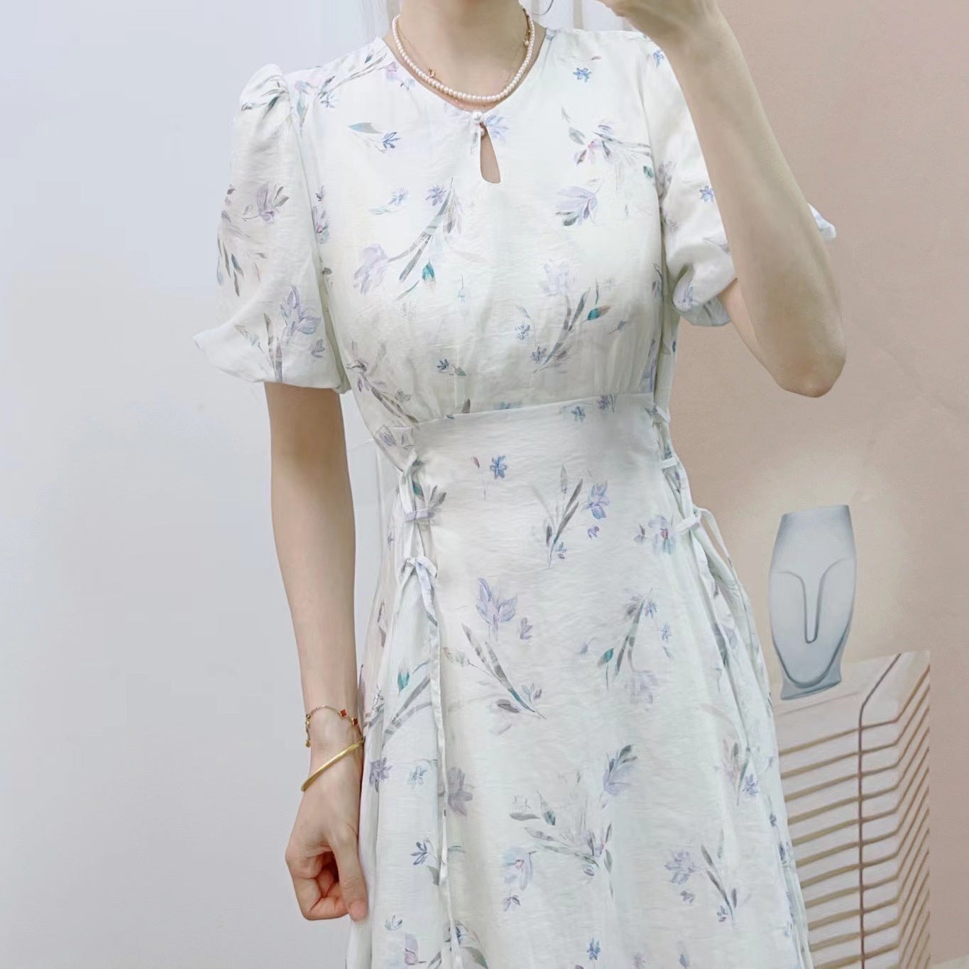 漢服風の要素を取り入れた半袖ワンピース。涼感ある素材と独特の柄が、春夏シーズンに映えるデザイン。新しいチャイナスタイルが楽しめます。