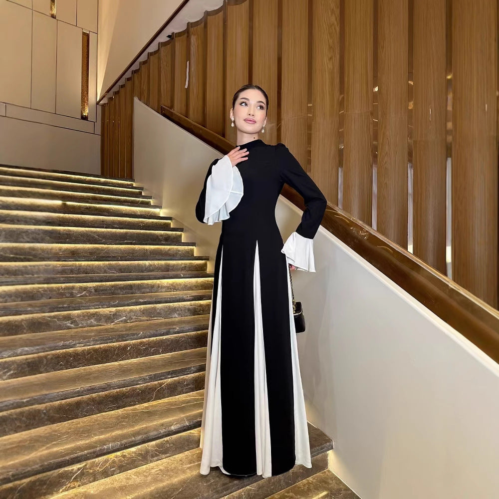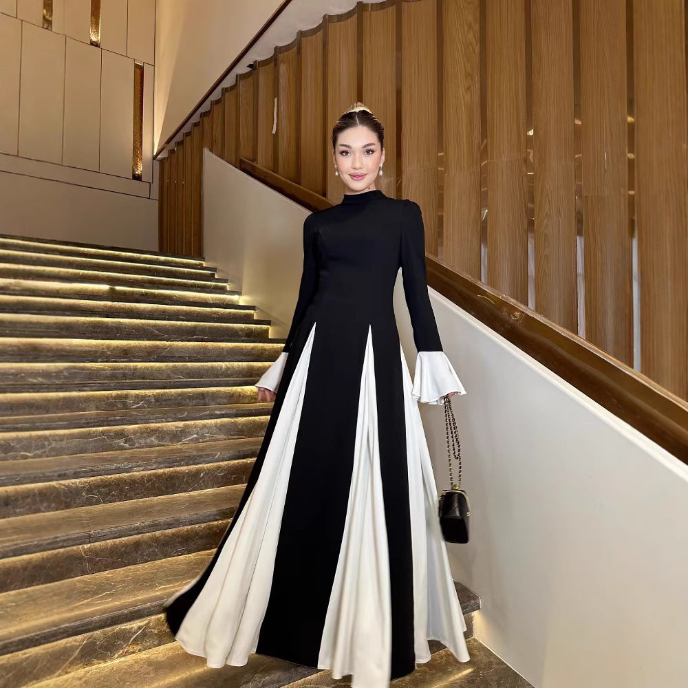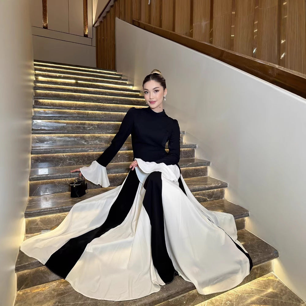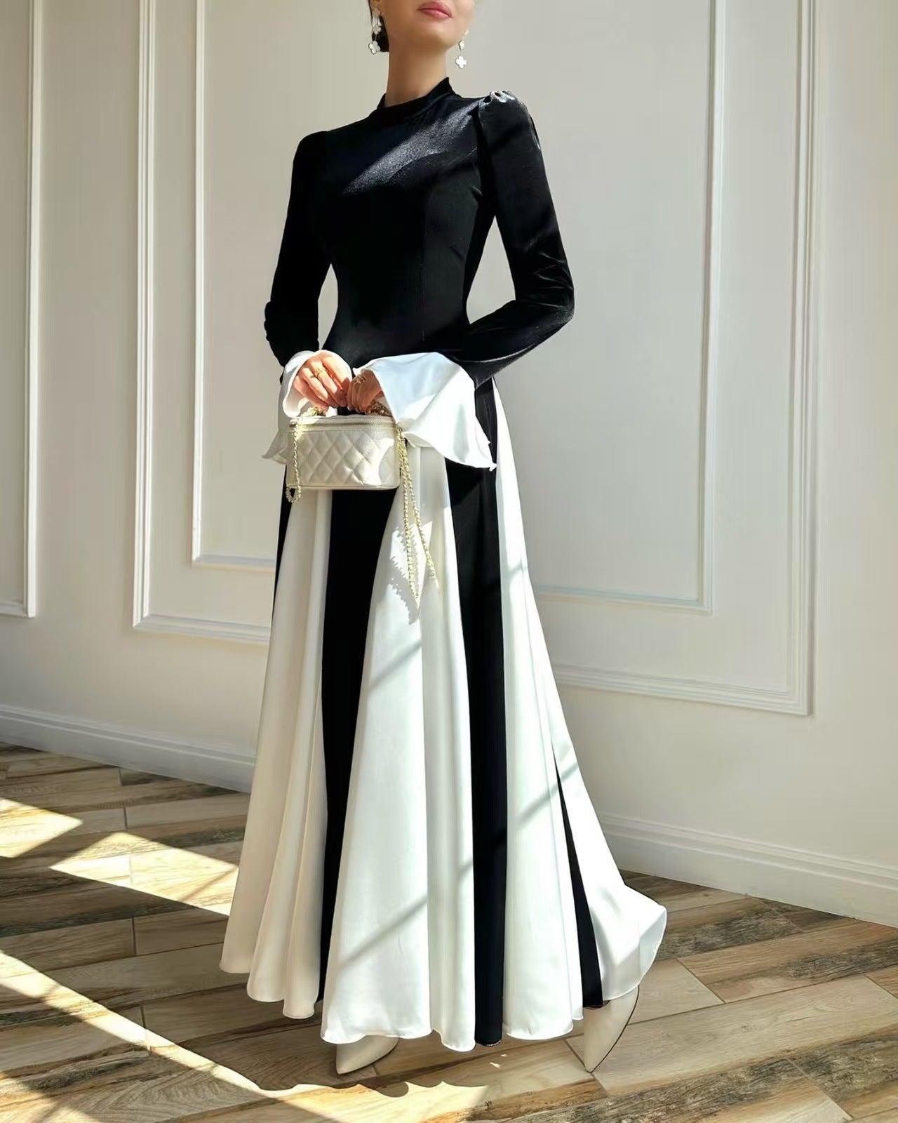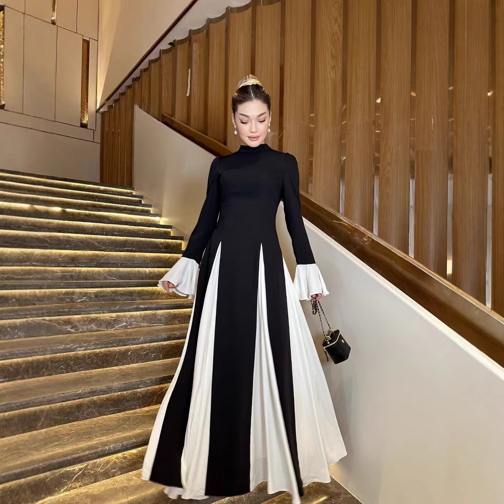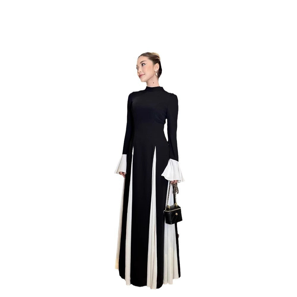 欧米風 春夏 ラッパ袖 配色 ワンピース 着痩せ きれいめ 大人 カジュアル